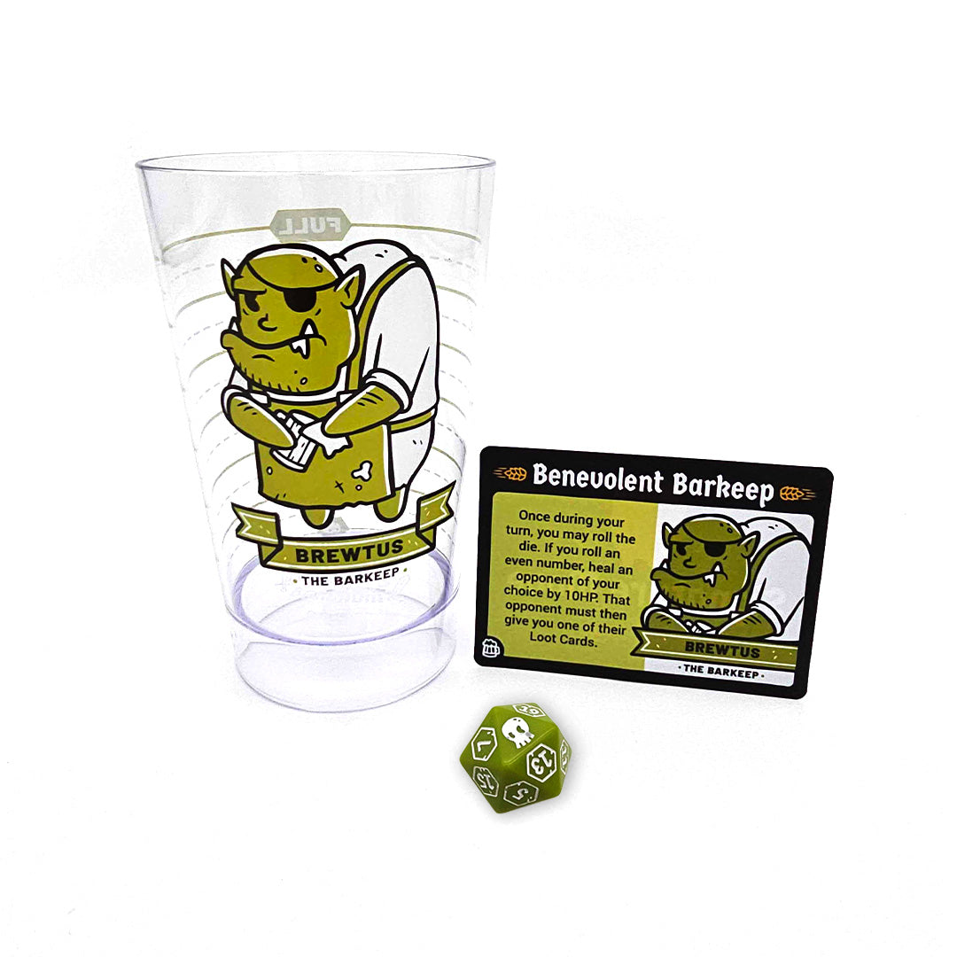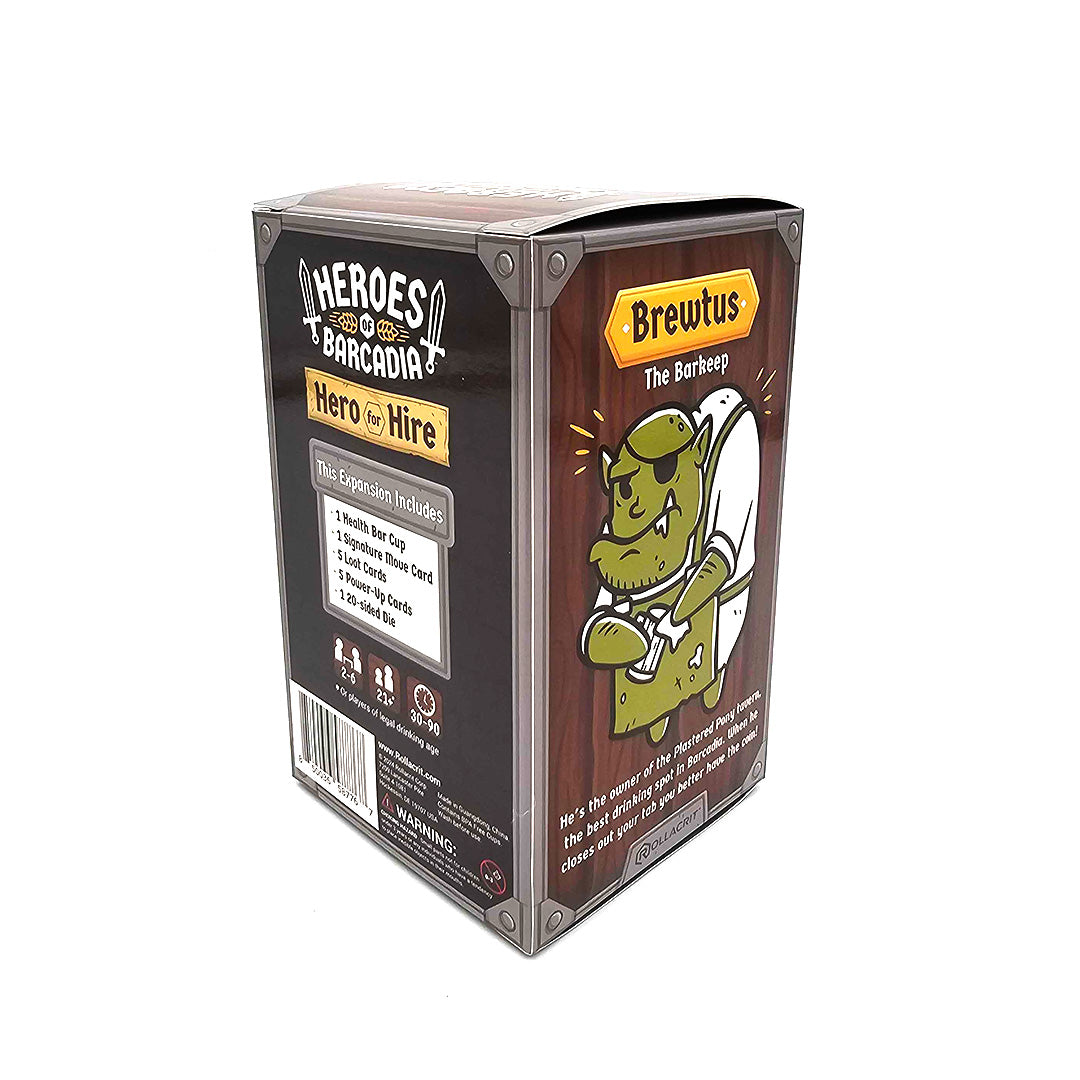 Smash the dungeon (and your thirst) with Brewtus Pintsmasher! Add everyone’s favorite frothy brawler to your Heroes of Barcadia: Heroes for Hire lineup with this single-character expansion. Brewtus comes equipped with a full suite of cards, a d20, and his own plastic Health Bar Cup—perfect for tracking damage or just staying hydrated mid-raid.